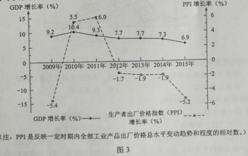 12.图3反映我国2009~2015年的宏观经济状况,为保持国内经济平稳、持续增长,政府可以采取的财政措施是