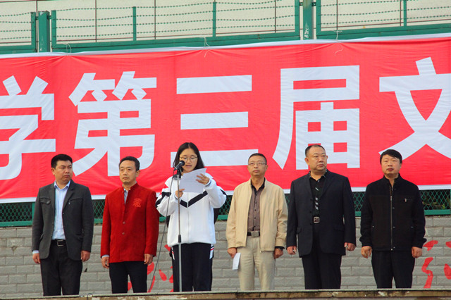 开幕式由副校长郭辉同志主持。蓬溪中学副校长、第三届校园文化艺术节组委会副主任许忠良同志致开幕词。他指出举办校园文化艺术节是蓬溪中学全面贯彻党的教育方针、大力推进素质教育、丰富师生校园文化生活的重要举措,是展示师生艺术才华、竞技水平和学校艺体教育成果的盛会,是全校师生艺体才能、精神面貌、校风校纪的大检阅。同时也介绍了艺术教育所取得的丰富成果,以及本学期开展的一系列文艺活动。学生代表宣读了学生会、团委会对第三届校园文化艺术节倡议书。表达了全体学生将全力以赴地参加此次艺术节的各项活动的决心。最后,由学校党委副书记冯清华同志宣布蓬溪中学第三届校园文化艺术节开幕。