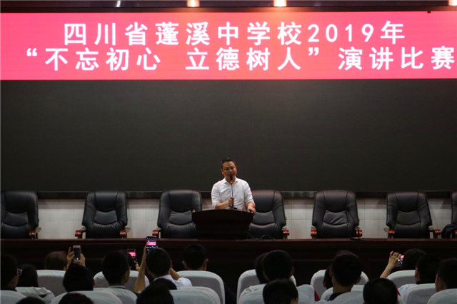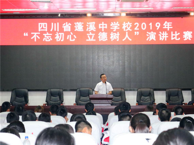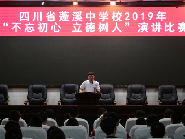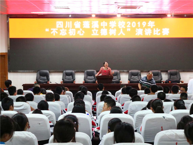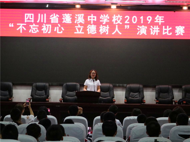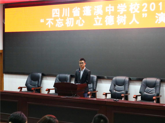 2019年5月13日晚7:00,蓬溪中学在学术报告厅举办了以“不忘初心,立德树人”为主题的师德师风演讲比赛。