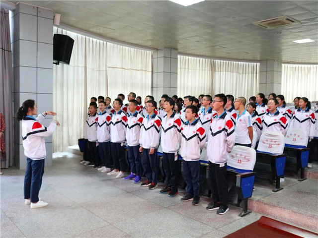 学生在演讲比赛前进行了蓬溪中学校歌比赛