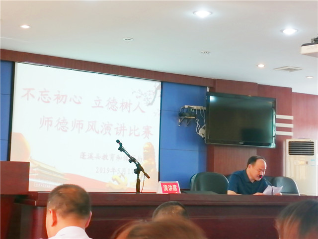 2019年5月17日上午,赵江屏老师代表蓬溪中学校参加了全县教体系统开展的“不忘初心、立德树人”为主题的师德师风演讲比赛决赛。