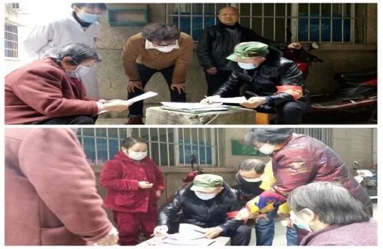 第五支部书记陈蓉(右一)协助居民区开展疫情防控工作