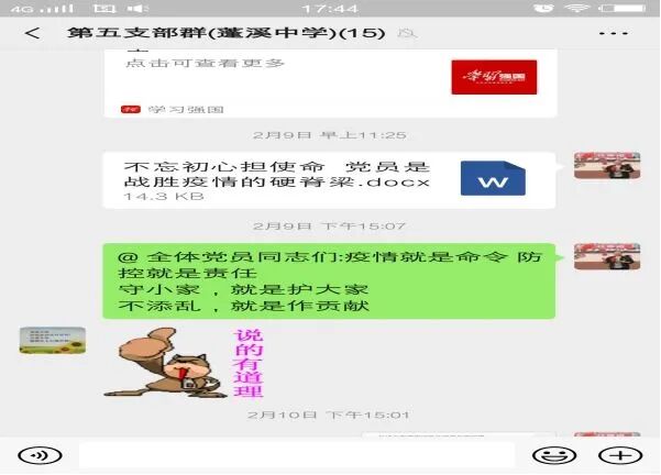 自疫情发生以来,后勤支部全体党员积极响应上级主管部门、学校党委的号召,主动参与到基层防控工作中:一是严格执行学校工作要求和安排,政教处抓好、做实对市外返蓬的师生员工进行排查、报告、跟踪记录,建立台账,严格按照省教育厅、县教育体育局要求进行排查数据日报告;总务处做好防控物资储备和校园消杀;保卫科做好门卫出入管理、巡查等;微机室做好“停学不停教”网络直播课的技术保障和维护等;教科室编发了新冠肺炎防控科普系列宣传图片,……二是积极利用校讯通、钉钉群、微信群、qq群等网络渠道向师生宣传科学防控新型病毒感染知识、抗疫歌曲、静心阅读系列材料等;三是增强自我防范意识,提高自我防护能力,宅家,不添乱;四是参与学校、社区、居住小区的防控宣传、劝导等。在紧闭的校园大门内,后勤人员的防控工作没有片刻松懈,他们无私奉献,人人争做疫情防控宣传员、监督员、战斗员……