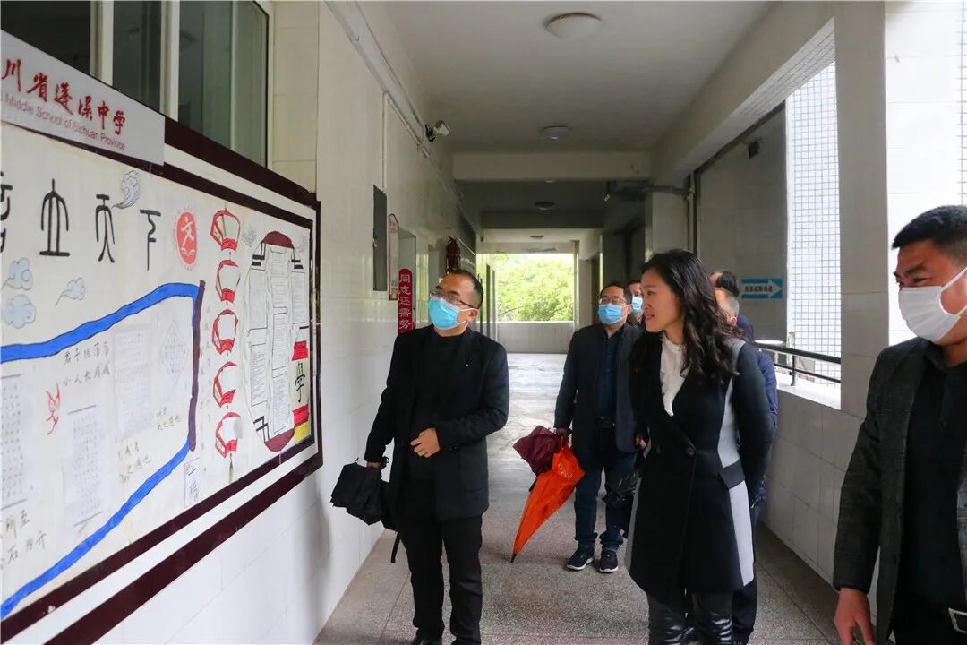 熊琳一行来到高三教学区,查看了高三年级班级文化和励志氛围的营造,视察教师上课学生听课情况。蓬溪中学疫情期间网课教学在川中地区率先开课,四川卫视都专程前来采访报道,熊琳得知后,充分肯定蓬溪教体局和蓬溪中学的网课教学工作所取得的成绩。