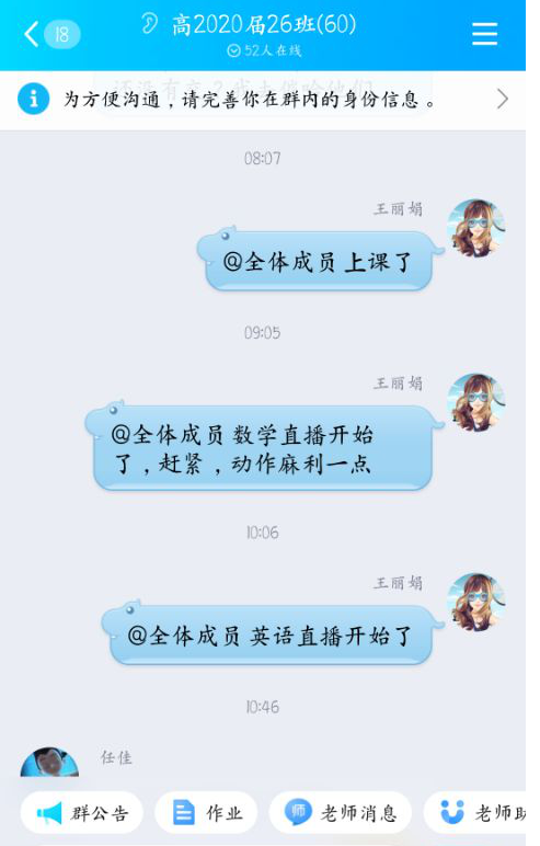 6、每天实时关注各科直播课学生到位情况,及时通知未到学生,保证学生百分百听课。