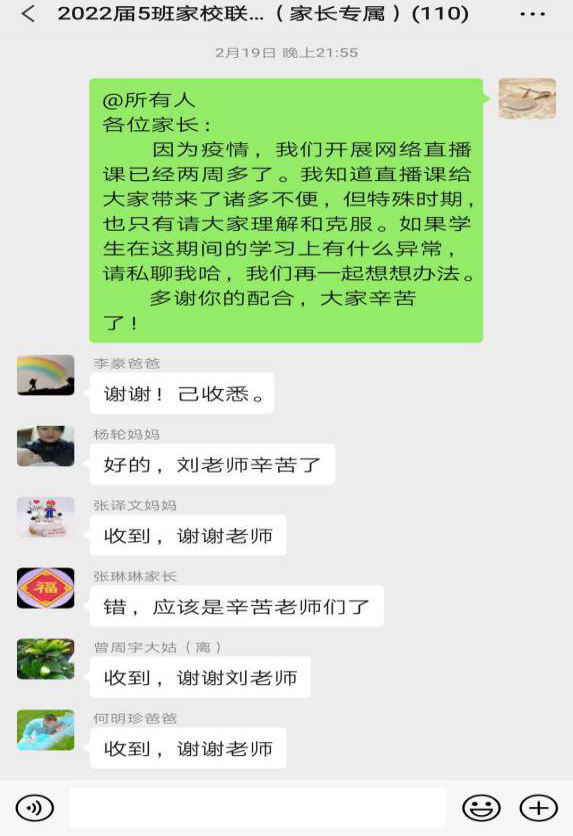 8、积极联系班级科任老师,为他们排解网络授课困难。多次召开班级网上教研会,沟通学生学习反馈情况。