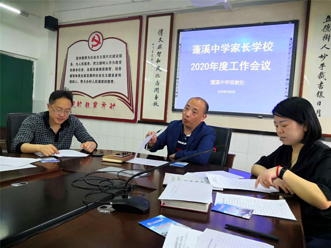 为了更好的开展家长学校工作,5月9日上午,政教处组织召开了蓬溪中学家长学校2020年度工作会议。政教处主任文宏宇组织相关工作人员参加了会议。