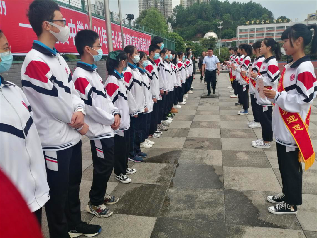 受疫情影响,无法组织初中年级全体师生参与。5月24日晚,政教处副主任刘艳通过广播,向全校通报了初中年级2019年度校“三好”、优秀学生干部、文明学生、校先进班集体,并号召学生们向他们学习。星期一在升旗仪式上,获奖学生到现场接受颁奖,其余同学通过广播收听了颁奖仪式,胥杰校长、陈长奎副校长等校级领导亲自为获奖学生颁奖,并鼓励他们再接再厉,再创新成绩。