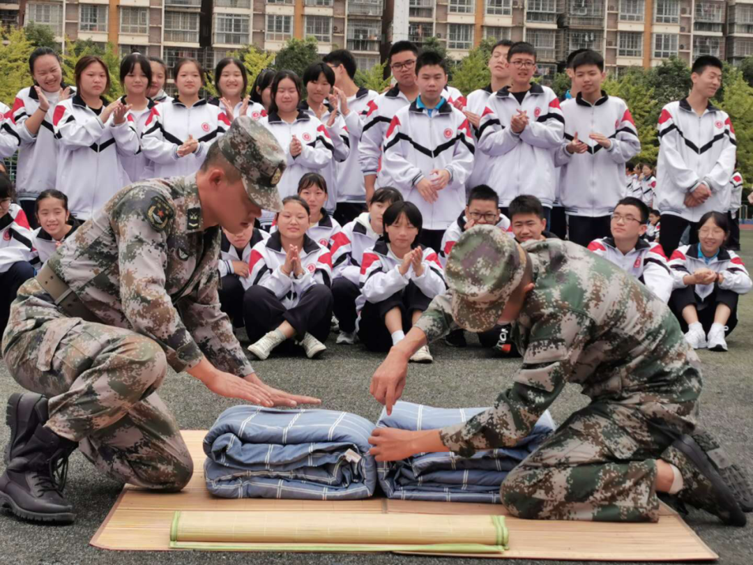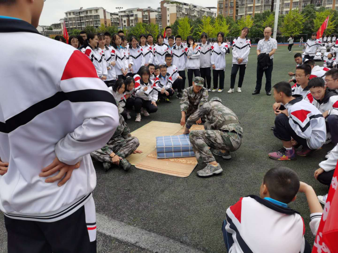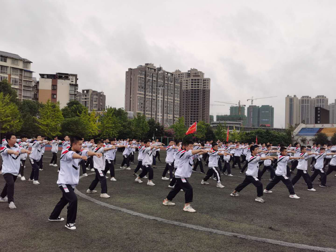 伴随着站军姿、踢正步、走方队、跨立、立正,大课间操、军事拳,叠军被、整理内务等一系列训练活动按计划有条不紊地训练着。同学们坚持着、拼搏着,他们动作整齐划一,体验着军旅的苦与乐。军训对于新生来说,不仅是汗水的洗礼,更是意志力的磨炼。同学们在不断地重复训练中,懂得了什么叫服从,懂得了什么坚持,懂得了什么叫纪律。