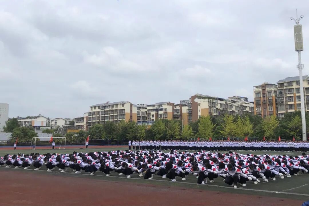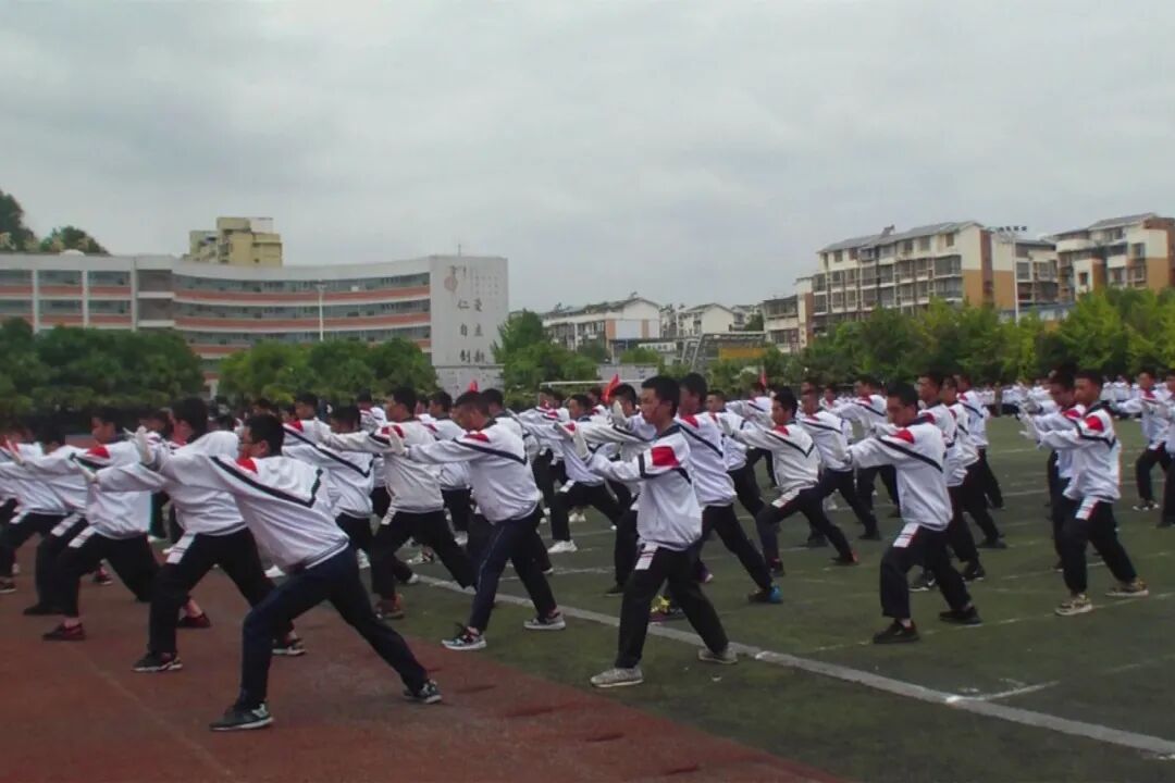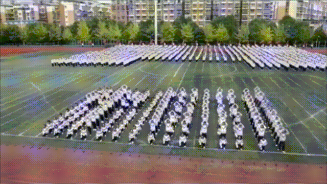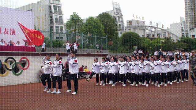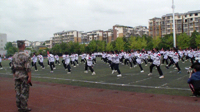 接下来同学们的表现更是优异,男子擒敌拳方队、女子军体拳方队一一登场,同学们动作整齐划一,呐喊声回荡在校园的上空。