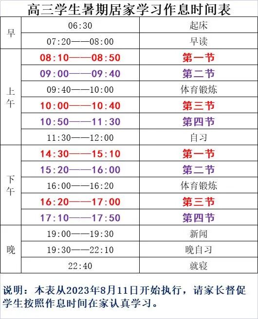 居家期间,学生严格遵守《作息时间表》,认真开展各科学习以及弱差学科的查漏补缺。请家长务必督促孩子遵守作息时间,按时、保质、保量完成学习任务,及时与班主任、科任教师交流孩子居家学习情况。