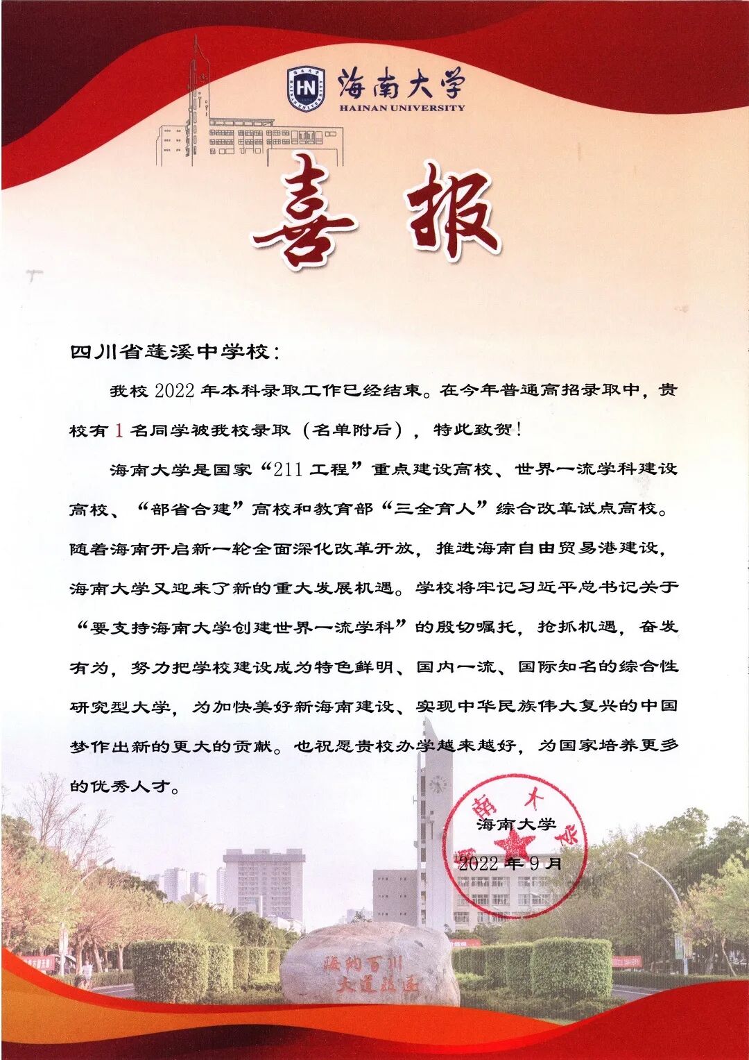 海南大学发来喜报!