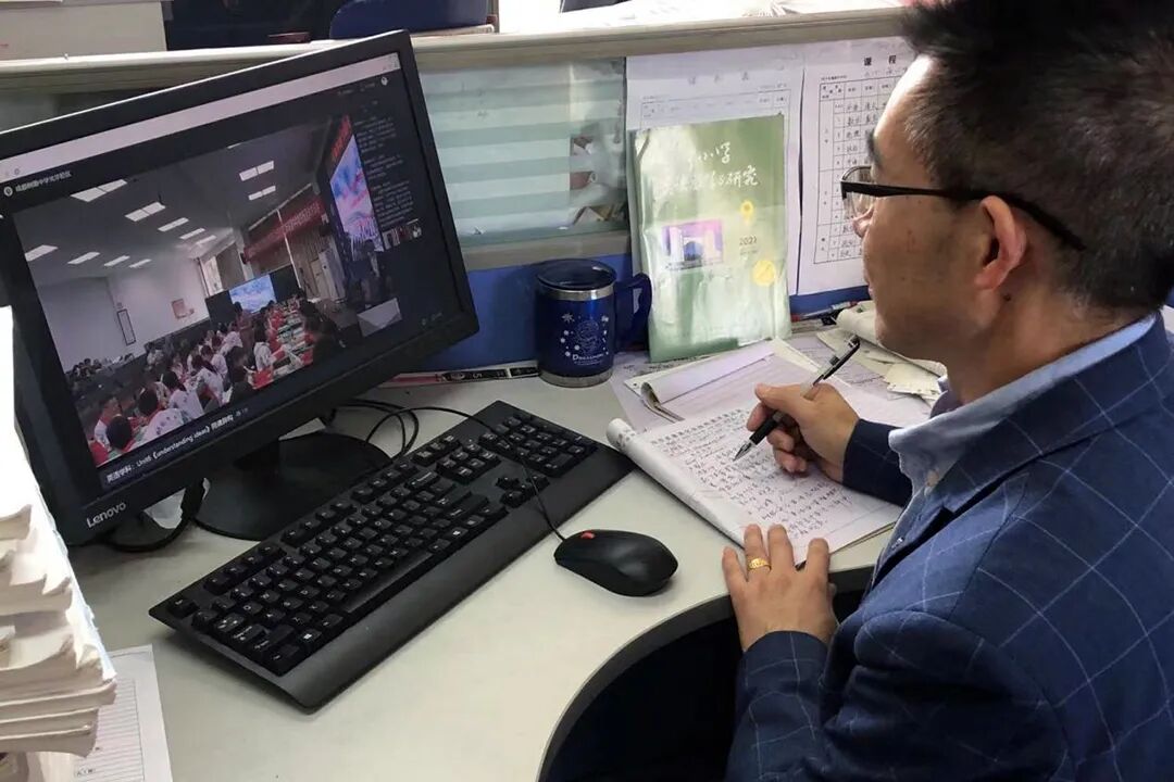 为学习名校教学教研先进经验,学校抓住每一次观摩、提升的机会,提前进行会场准备、设备调试和直播预告,老师们在教学之余认真参研、积极思考并进行线下学习心得分享和未来工作谋划。