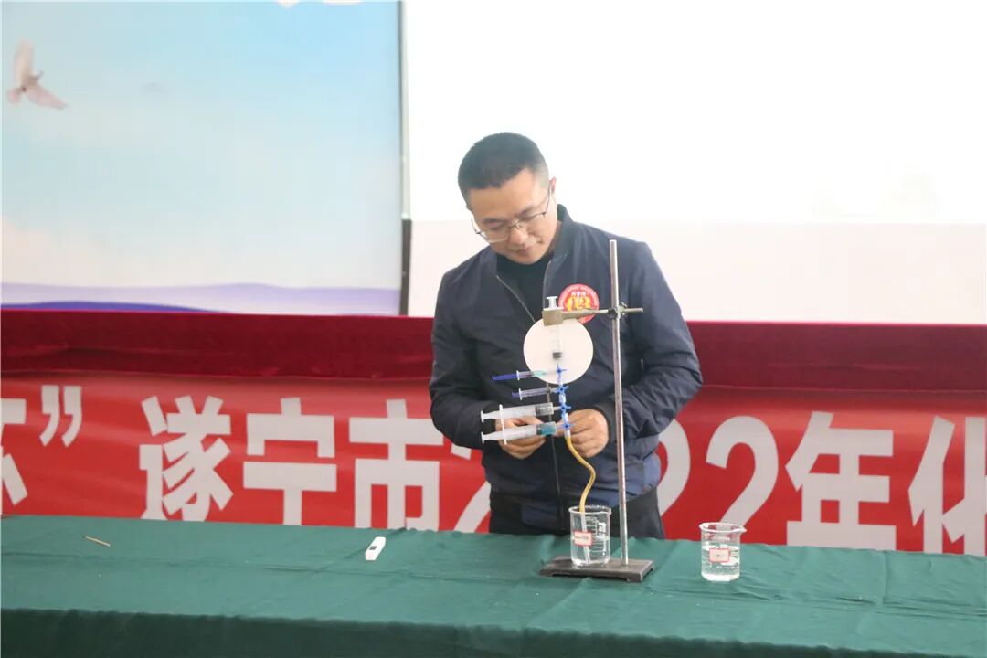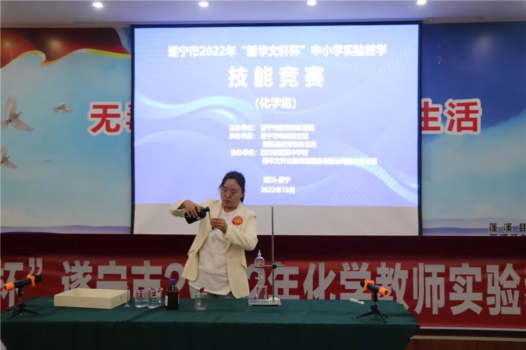 为全面贯彻党的教育方针,落实立德树人根本任务,全面发展素质教育,努力构建与德智体美劳全面培养的教育体系相适应、与课程标准要求相统一的实验教学体系,10月26日,由遂宁市教育和体育局主办,遂宁市电教教仪站、蓬溪县教育和体育局所承办,蓬溪中学、新华文轩协办的遂宁市2022年“新华文轩杯”实验教学技能(化学组)现场竞赛活动在蓬溪中学校举行,来自全市各区县共十四名选手参加了本次现场竞赛活动。
