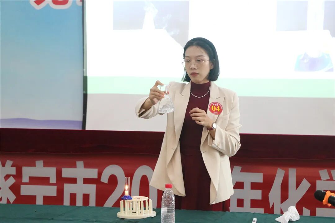 经过紧张而激烈的角逐,蓬南中学唐亚军、遂宁中学校郑红霞、周毅、罗娜等四名选手获得本次竞赛一等奖。26日下午,市县教体局领导为获奖教师颁发了荣誉证书,遂宁市电教站罗玉霞从完善实验教学体系、创新实验教学方式、规范实验教学实施、提高教师实验教学能力、强化实验教学安全管理等方面,对加强和推进全市实验教学提出了具体要求,希望大家重视实验教学,为育人方式转变和学生核心素养提升立行力行。本次竞赛活动实验技能展示与现场观摩相结合,也是一次实效性很强的化学实验操作技能培训,受到了与会老师的一致好评,有效推动了全市初高中化学教师充分运用实验仪器开展实验教学,促进了新课改背景下实验操作技能的创新运用。为提高课堂教学质量,发展教师实验操作能力起到了积极推动引领作用。