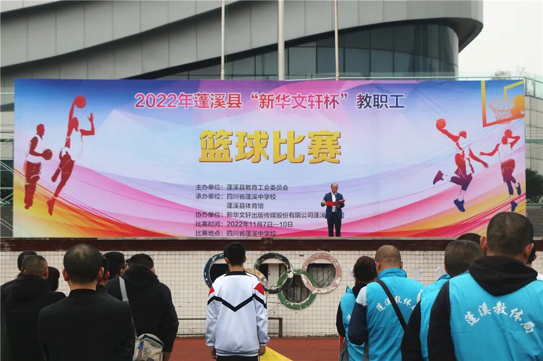 最后,本届运动会组委会副主任、蓬溪县教育和体育局机关党委书记刘志军先生宣布“2022年蓬溪县新华文轩杯教职工篮球比赛正式开幕!”