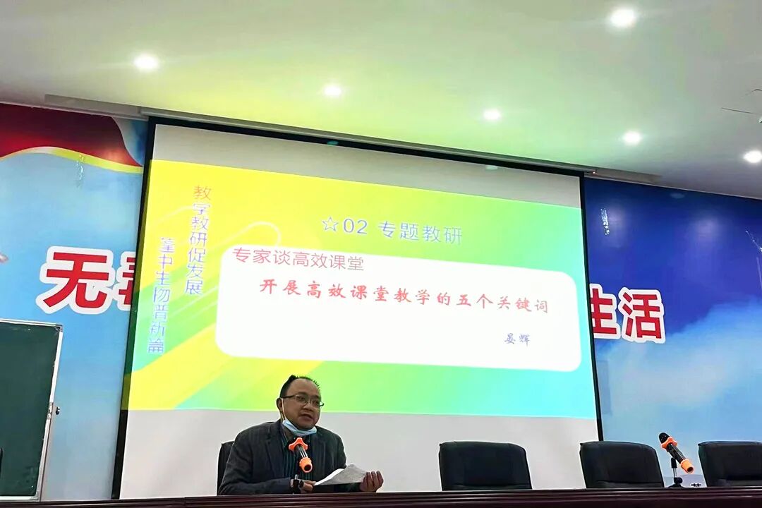 科研室主任晏辉老师用“学生核心素养”、“目标达成”、“情境教学”、“问题串形成”、“大单元教学”五个关键词就“开展高效课堂教学”做专题发言。晏主任提出学科核心素养是学科育人价值的集中体现,是学生通过学科学习而逐步形成的正确价值观念、必备品格和关键能力。学生应该在学习过程中逐步发展科学思维,如能够基于生物学事实和证据运用归纳与概括、演绎与推理、模型与建模、批判性思维、创造性思维等方法,探讨、阐释现象及规律,老师在制定教学计划时要注意情境的创设,通过不同的情境设计探究活动,鼓励学生自己观察、思考、提问,并在提出假设的基础上进行探究活动方案的设计和实施,最终得出探究性学习报告,并可以小组之间进行交流。整个过程中,教师更多的作为组织者、指导者,为学生提供适当的帮助,提高探究实践活动的可行性。最后,立德树人是教育的根本任务,教学过程中要注重与社会的联系,培养学生的社会责任意识。在日常生活中,教师要多注意与学科有关的社会热点问题,不但能够提高学生的学习兴趣,同时能够引发学生的思考,形成一定的社会责任意识。