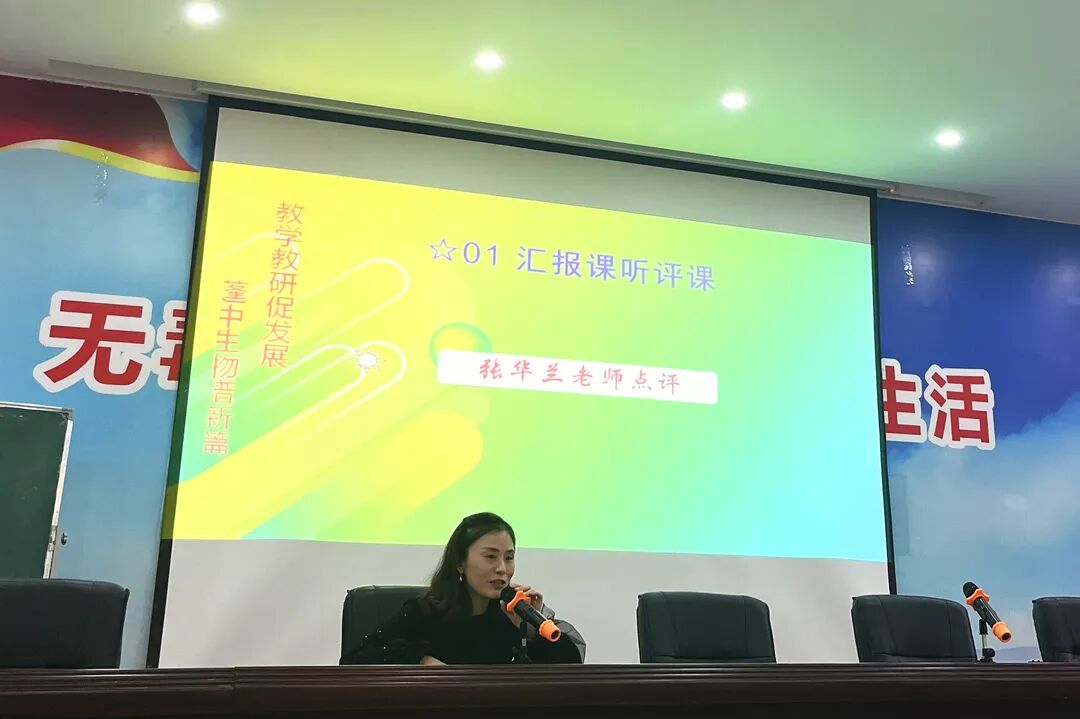 专题发言环节中高一生物备课组组长张华兰老师结合自身一线教学经验作了“新课标 新教材 新思路 新起点”的专题发言。她提到全新的课程理念 “面向全体学生,提高生物科学素养,倡导探究性学习”要求我们在教学过程中要注重大概念教学。生命观念的形成离不开对生物学概念的理解,但机械性的背诵并不能使学生对生物学概念进行理解和应用。因此,教师在教学过程中要注重概念之间的联系和逻辑关系,注重对概念本质的理解。张老师说到学理科要讲“理”,"顺势而为",要"因势利导",这样才能使讲“理”的学习不抽象 有实效。因此,教学之前我们先要弄清楚什么是理科的"势",即它的特点和规律,才不至于在教或学的过程中南辕北辙 并提倡老师们用好教师用书 。在发言中张老师还提到情境教学的重要性,以生动形象的情景激发学生学习情绪,实现和学生心境共鸣。也符合新课程标准的要求,促使学生自主学习和自主探究能力,进一步达到教与学的和谐统一。