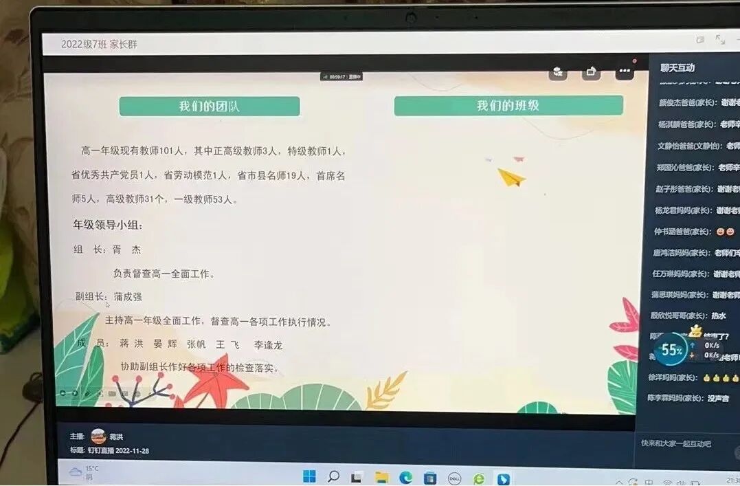 教务处主任、年级主任:蒋洪召开钉钉家长会