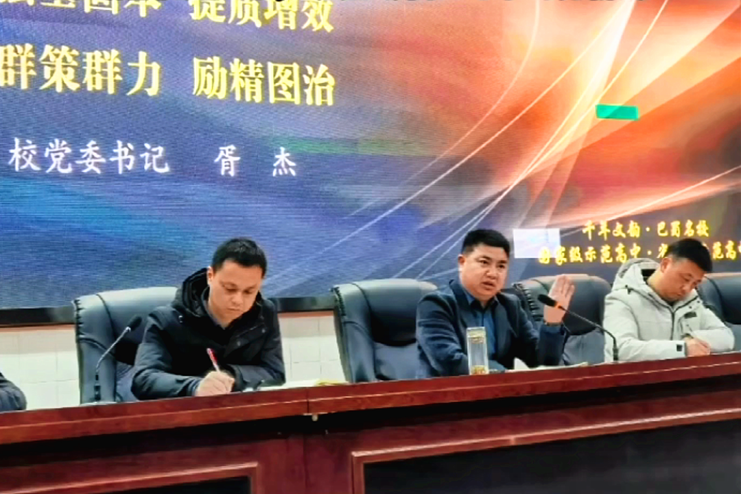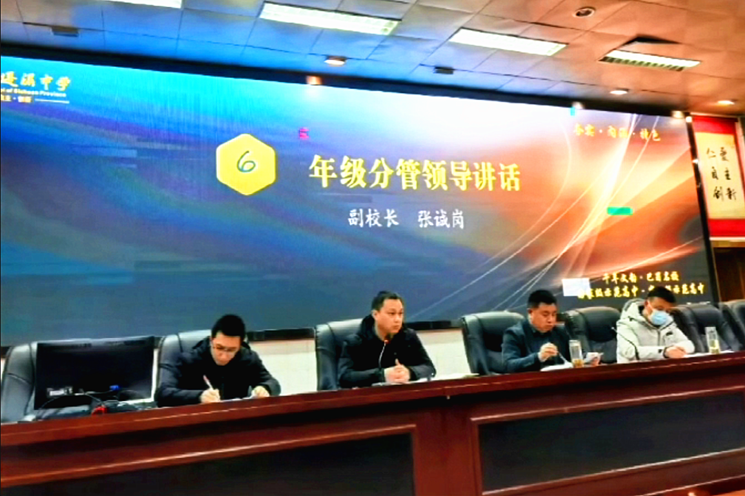 张诚岗副校长首先感谢高三全体师生的辛勤付出,12月我们经受了一场特殊的感冒,老师们和全体学生都经历了这一场天灾,老师们承受了巨大的压力和身心痛苦,但始终坚守在教学第一线,我们学生能有可亲可敬的教师的教导是学生成才之福,学校能有不辞辛劳的教师的奉献是学校发展之福。 张诚岗深刻剖析了年级发展现状,重点对下一阶段的德育工作、教研工作、教学工作、蹲班工作作了具体安排。
