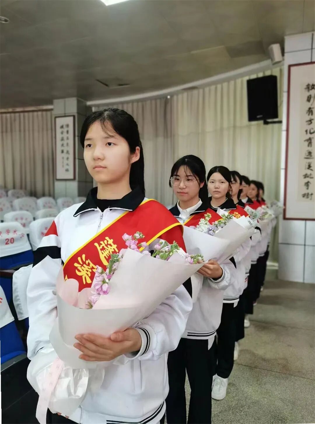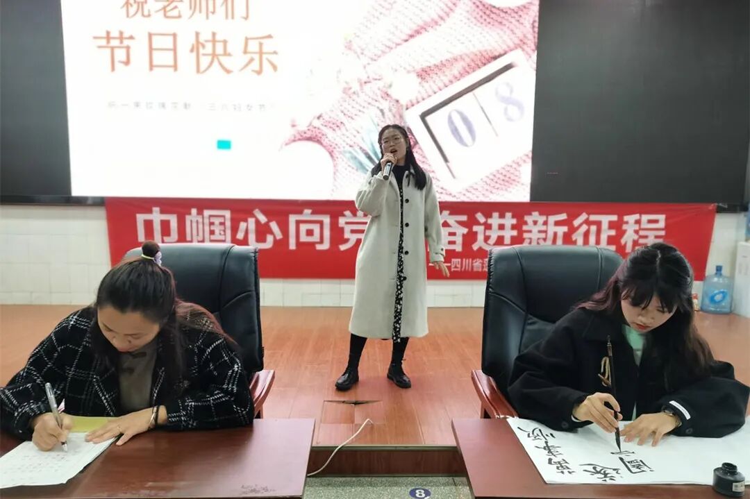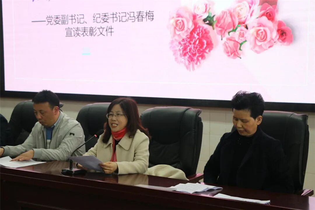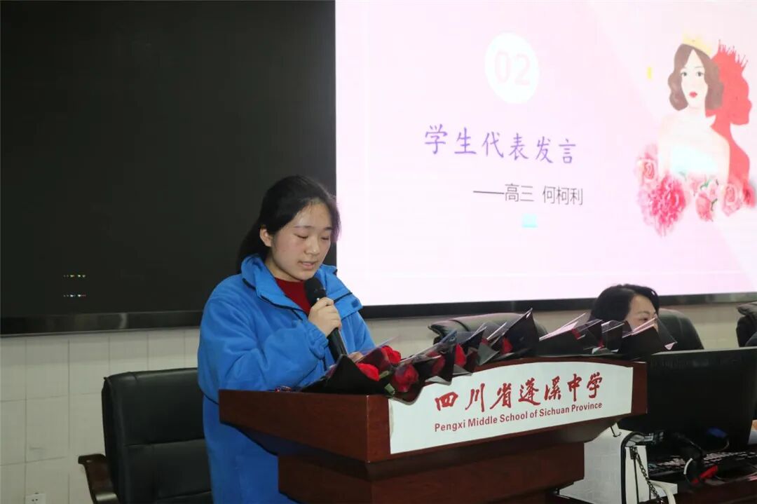 下午两点四十,在学术报告厅举行了三八国际妇女节庆祝活动及表彰大会。工会副主席刘莉老师主持会议,蓬溪中学党委副书记冯春梅宣读表彰文件:蓬溪中学妇委会获市妇联“三八红旗集体”荣誉称号,李桂萍老师获县教体局表彰的“三八红旗手”称号,张兰,黄秀兰,陈凤梅,宣艳修,汪友兰, 陈 蓉(政)等老师获县教体局表彰的“巾帼建功标兵”称号,陈春艳等13名老师获学校表彰的“三八红旗手”称号,冯应芬等13名老师获学校表彰的“巾帼建功标兵”称号。校级领导为以上获奖女教师颁发证书、奖杯并献上鲜花。李桂萍老师作为获奖女教师代表发言,学生代表何柯利也深情地表达了对教师妈妈以及全校女教师们的祝福。妇委会刘艳主任从坚定理想信念、提高政治站位,开拓创新、扎实搞好妇女工作,关爱女生、积极开展女生教育等三个方面总结了一年的工作。