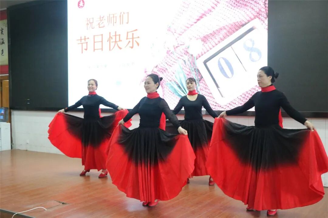 在表彰大会之后,全校女教职工在学术报告厅举行了热情洋溢的文艺联欢活动。各年级老师们精心组织,积极参与,呈现了开场歌舞秀、独唱、舞蹈、朗诵、书法、舞剑等形式多样的节目。![]()
