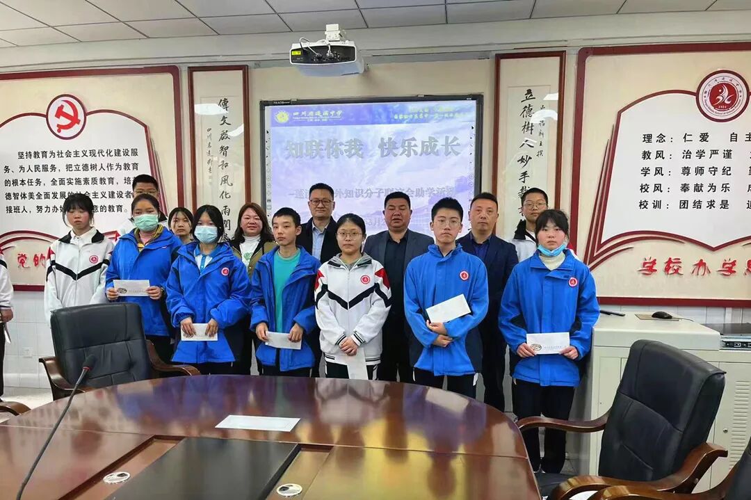 活动中,杨国栋希望同学们关注国际国内大事要事,拓宽知识面,珍惜学生时代,把握学习时机,努力提升自己,将来做一个对社会有贡献的人。与会领导给每位受助学生发放助学金500元后,冯欣代表学生发言,感谢知联会各位叔叔阿姨的爱心,一定心怀感恩,努力学习,今天他们以蓬中为荣,明天定要蓬中以他们为傲。