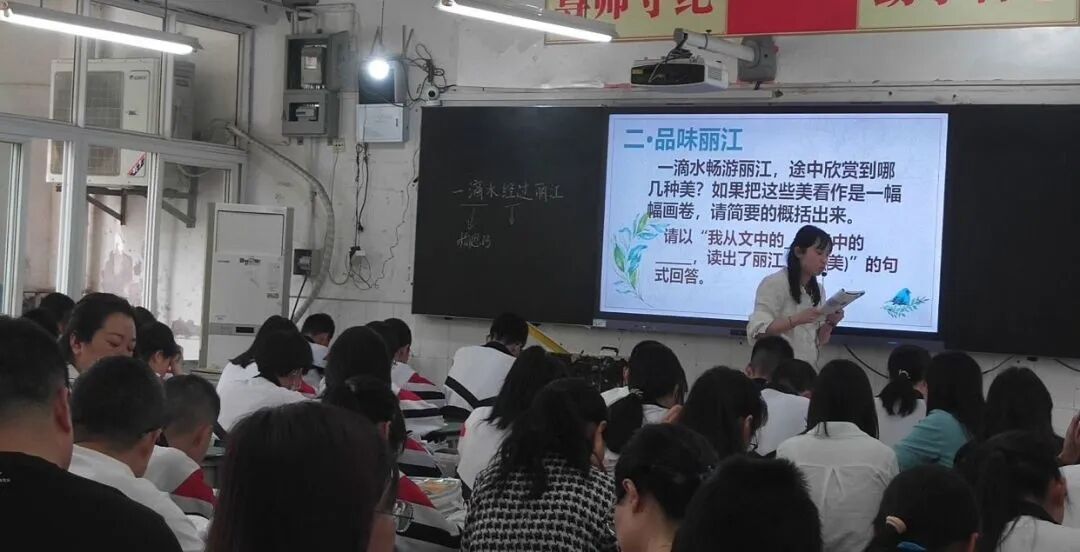 李倩老师执教八年级下册自读课文《一滴水经过丽江》,所设置的任务单“游览丽江——品味丽江——寄情丽江”,教学目标明确,引导学生带着问题去阅读课文,理清文脉,层层深入,有效落实记叙文六要素,体会文章的思想感情。