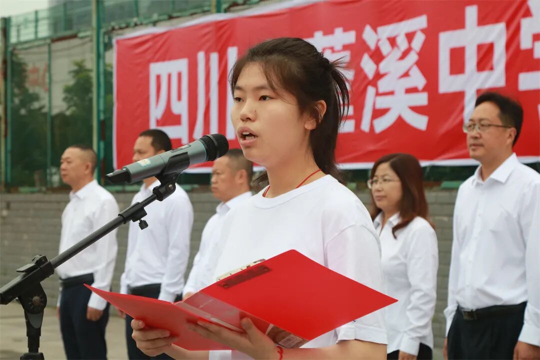 高三年级学生代表刘鑫宇带领全体高三年级同学庄严宣誓,将内心的热血憧憬,通过激昂的誓言宣之于众。全体高三同学的宣言,字字坚定,句句铿锵,以万丈豪情,展示出了蓬中学子的豪迈气概!