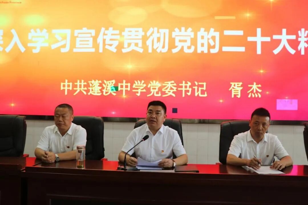 学校党委书记胥杰同志组织全校党员学习了党的二十大精神,作了四川省蓬溪中学校“严纪律、勇担当、抓落实、促跨越”干部队伍作风整治专项行动动员讲话和主题为“高扬党的旗帜 再创蓬中辉煌”的七一讲话。