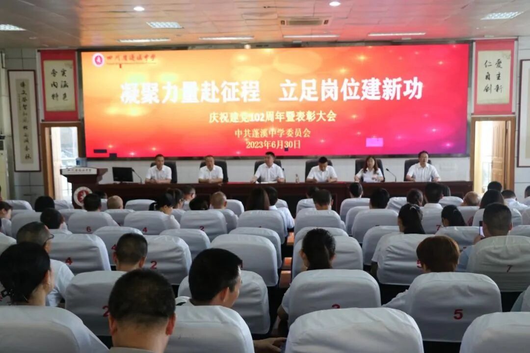 为庆祝中国共产党成立102周年,弘扬伟大建党精神,营造爱党爱国的浓厚氛围,激励各支部和广大党员继续发扬党的光荣传统和优良作风,真抓实干、拼搏进取。2023年6月30日下午,中共蓬溪中学委员会召开了庆祝建党102周年大会,会议由蓬溪中学党委副书记冯春梅同志主持,在庄严的国歌声中,大会拉开了序幕,约120余名党员参加了大会。