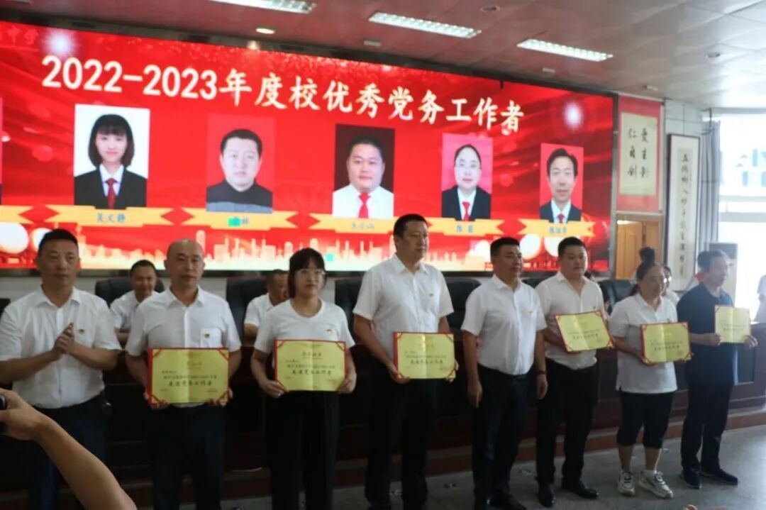 随后,学校党委副书记、校长杨加林同志宣读了《中共蓬溪中学党委关于表彰2022—2023年度先进支部、先进党务工作者、及优秀共产党员的表彰决定》的表彰文件。学校党委对三个先进党支部和6名优秀党务工作者、24优秀共产党员进行表彰慰问。这是对教书育人、立德树人精神的弘扬,更是向党献礼最好的表达。学校领导向受表彰的先进支部、优秀党务工作者和优秀党员颁发了证书。