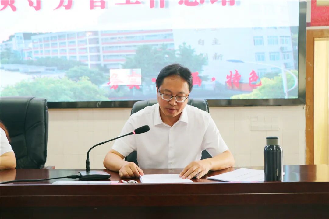 首先由副校长刘鸿杰安排暑期政治学习,刘校长在学习动员会上深入分析了此次学习的重要意义,并对全体教职工提出了要求。他强调,全体教职工一要提高站位,端正态度,沉下心来认真学习;二要突出重点,强化措施,真正把学习过程落到实处;三要明确目标,狠抓落实,确保政治学习扎实见效。