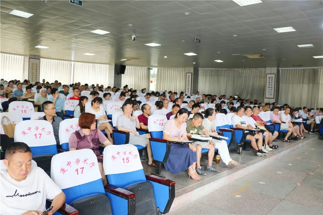夏条绿已密,奋进正当时。2023年7月12日上午,在圆满结束了本学期的各项工作后,蓬溪中学2022-2023学年下学期期末全体教职工大会在学术报告厅召开,学校党委书记胥杰、校长杨加林,全体行政领导和教职员工共470余人参加会议。会议由校长杨加林主持。