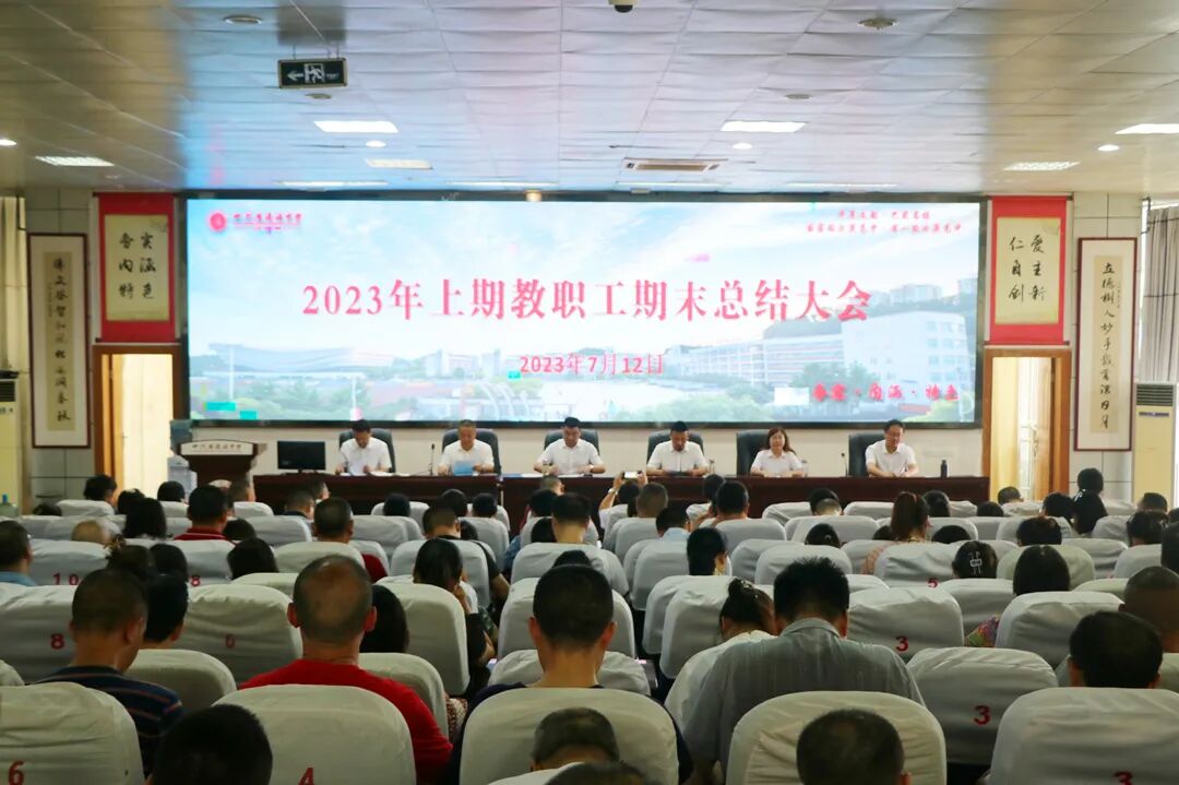 最后,党委书记胥杰总结学校学期工作。他指出,在这一学期里,各部门、年级通力协作、各司其职,全体教职工上下一心,共谋发展,学校党建工作、特色德育、教学教研等各项工作稳步有序推进,取得了可喜成绩,特别是高考取得了突破性的成绩,他代表学校对每一个蓬中人的辛勤付出表示感谢。胥杰书记还对学校下期工作作了安排布署,他寄语全体教职工,在新的学年要锚定奋斗目标、执着教育理想、永葆育人情怀,发扬蓬中精神,继续保持良好作风,振奋精气神,接续奋斗、苦干实干,努力办好人民满意的教育。