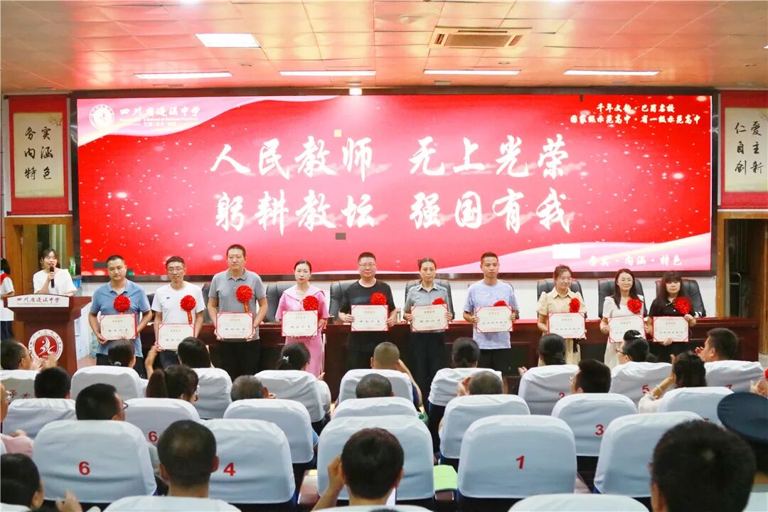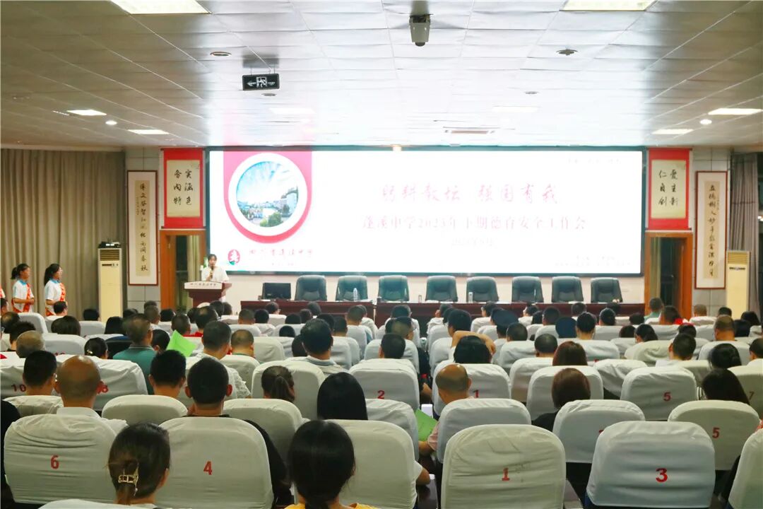 为了贯彻党的教育方针,落实立德树人任务,切实提升班主任管理水平、班级管理实效,助推学校育人质量的提升。2023年9月21日晚7点,蓬溪中学在学术厅召开了2023年下期德育和安全工作会。表彰颁奖由邓伊玲老师主持,德育安全工作部署会议由副校长张诚岗主持,全体行政领导、班主任、年级主任、年级助理、党支部书记和政教处、校团委、保卫科、宿舍管理人员参加了会议。