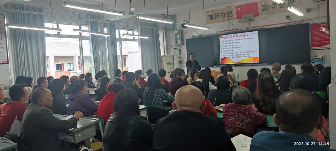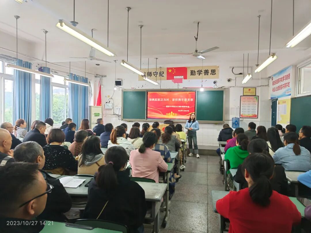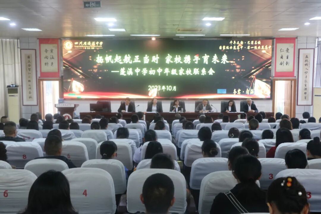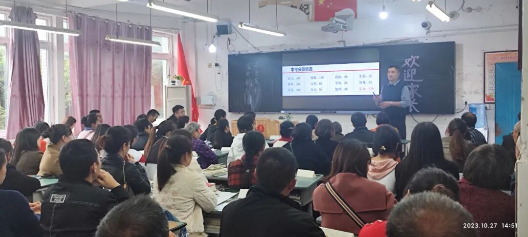 10月27日下午,蓬溪中学初中年级隆重召开2023年下期家校联系会。此次会议经过精心筹划,旨在进一步加强学校与家庭、教师与家长之间的联系,增进家长对国家教育政策、学校教学工作以及孩子在校情况的了解,达到家校共育、促进孩子茁壮成长的目标。本次会议分两个阶段举行。第一阶段,家长们听取学校工作报告,第二阶段,家长们在教室与班主任和任课教师进行交流。