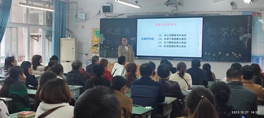 最后,冯书记还向家长们分享了一些家校共育措施。她说,立功立言必先立德,成功成才必先成人。希望家长发现孩子的闪光点,帮助孩子树立规矩意识,从培养孩子的良好的学习和生活习惯入手,严控电子产品使用时间,尤其要关注孩子的身心健康与安全。她建议家长们多与孩子进行有效沟通,正确对待孩子在学校的得与失,与学校一起悉心培育,帮助他们树立正确的世界观和人生观。在学习方面,家长尤其是初三年级的家长要关注孩子的压力分解,帮助其找到学习的着力点,积极查漏补缺,为达成自己的升学目标而努力。