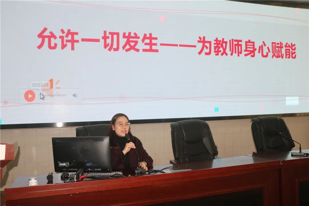 政教处副主任曹敏讲座的主题是《允许一切发生——为教师身心赋能》。曹主任从对职业的初衷,社会对教师的期待做了一些交流和分享。作为一名人民教师,应当敬业、爱业。但同时也应当做一名身心健康,身体健康、心理健康的教育者。作为老师,我们应当转换观念,释放压力,调节心理。健康的心理除了关系到自身生活的幸福与家庭的幸福,还关系到每一个学生的心理健康、日常生活与学习,以及学生家庭的幸福。因为,情绪是会传染的。所以,我们要用曹主任教给我们的方法,努力调整好认知、管理好情绪,让自己能量满满,在日复一日的忙碌中提升工作和生活的幸福指数。