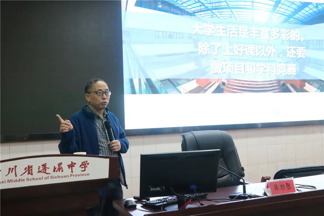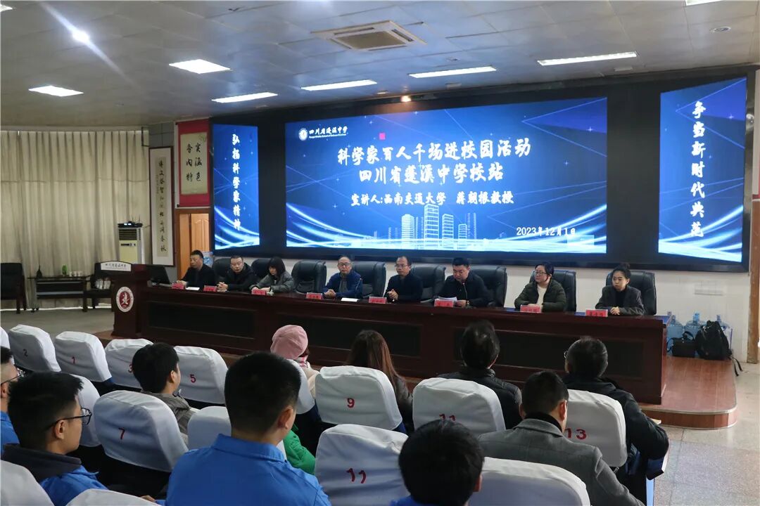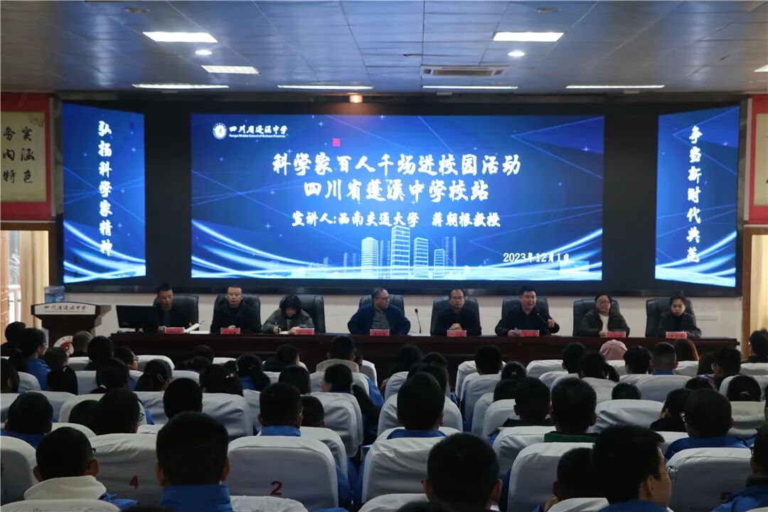 12月1日上午,2023年“科学家百人千场进校园”活动在蓬溪中学举行。西南交通大学计算机与人工智能学院教授蒋朝根通过宣讲带领孩子们在科学的世界里畅游。