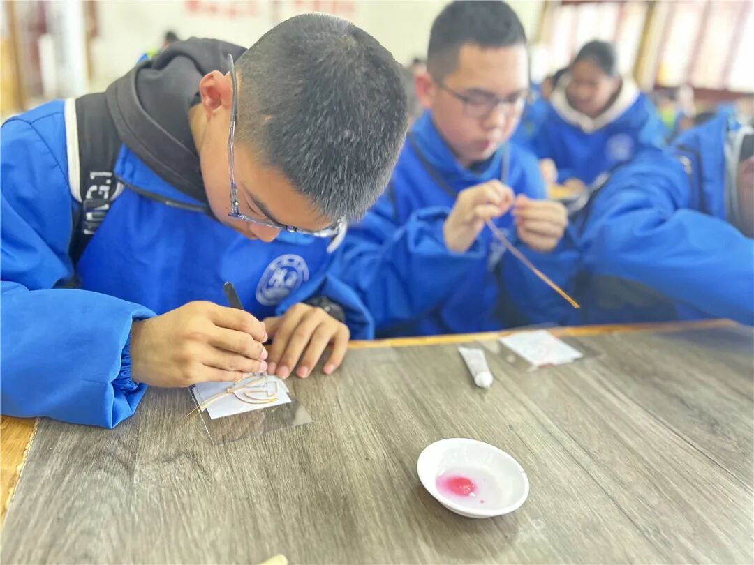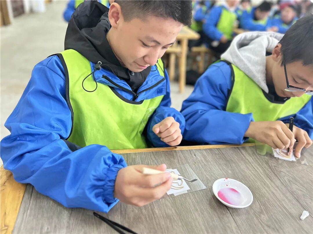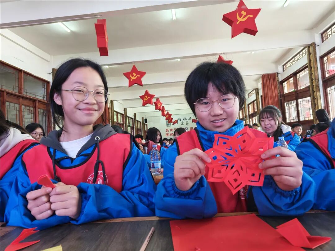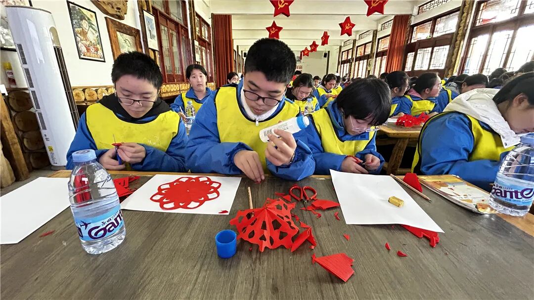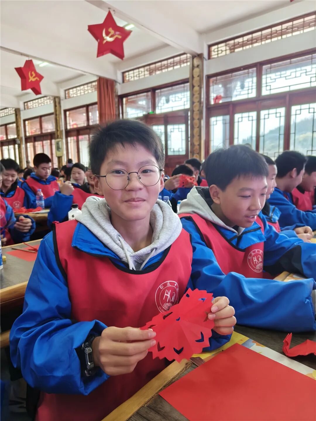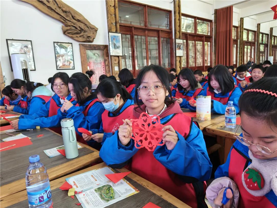 同学们还参观了农耕博物馆、汉文化物品陈列馆,了解文物背后的故事,感受不同年代的民俗文化。在研学导师的指导下,同学们还学习了剪纸和制作党徽的基本技巧,亲自动手制作了一个个别具一格的剪纸作品。