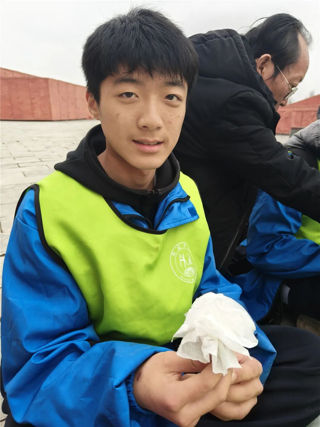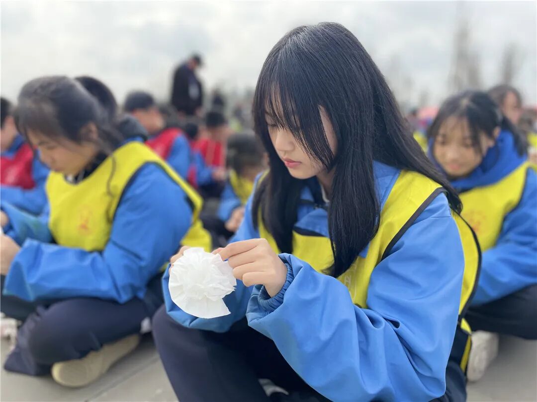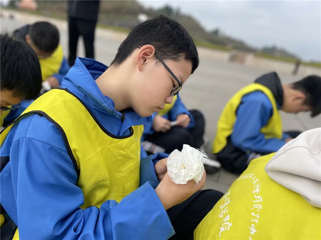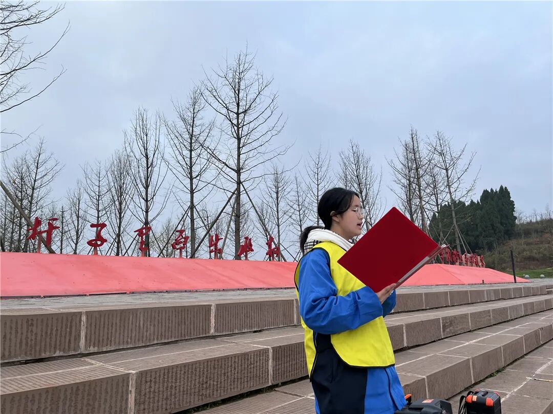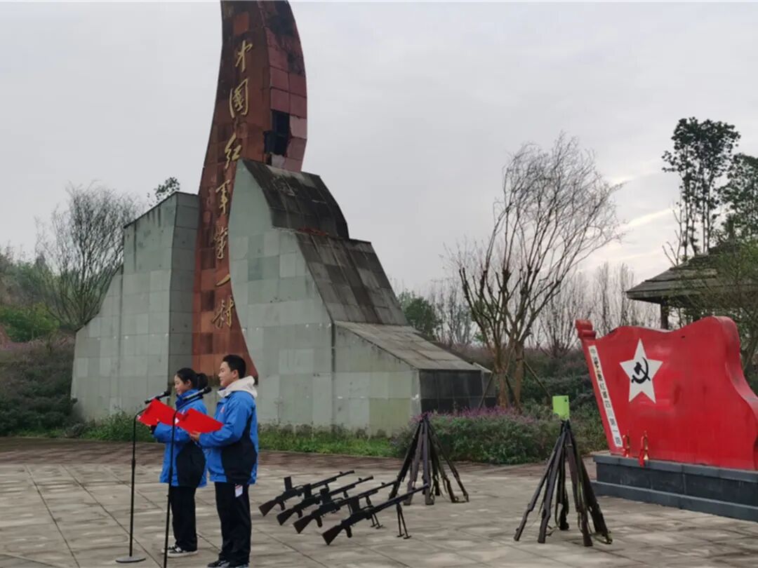 稍后,同学们来到旷继勋牛角沟起义纪念碑前举行缅怀仪式。学生代表深情念诵祭文,全体师生鞠躬默哀,同学们怀着崇敬而沉痛的心情为先烈们庄重献上亲自制作的白花。最后,全体师生高唱《歌唱祖国》,学生们高呼“请党放心,强国有我”,震耳欲聋的誓言响彻整个牛角沟。