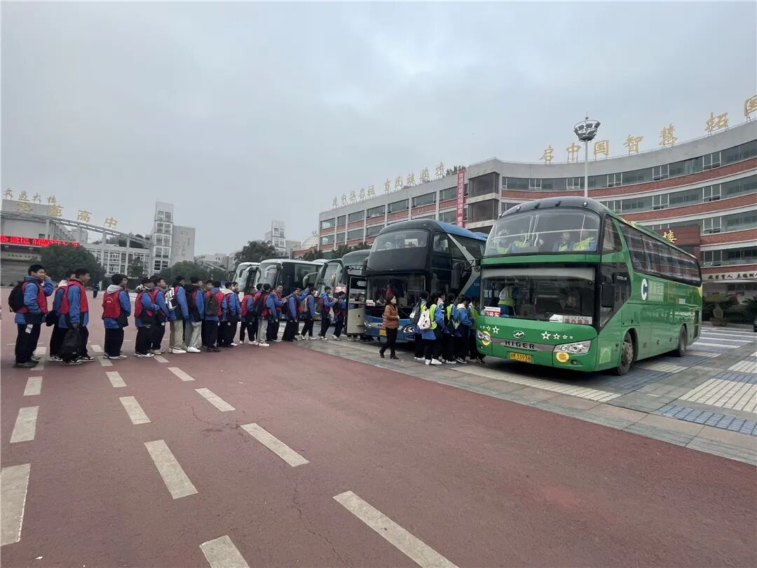 早上7:40,在带队老师和研学教官的组织下,学生们整队登车,在一路欢歌中,抵达牛角沟开启愉快的研学之旅。