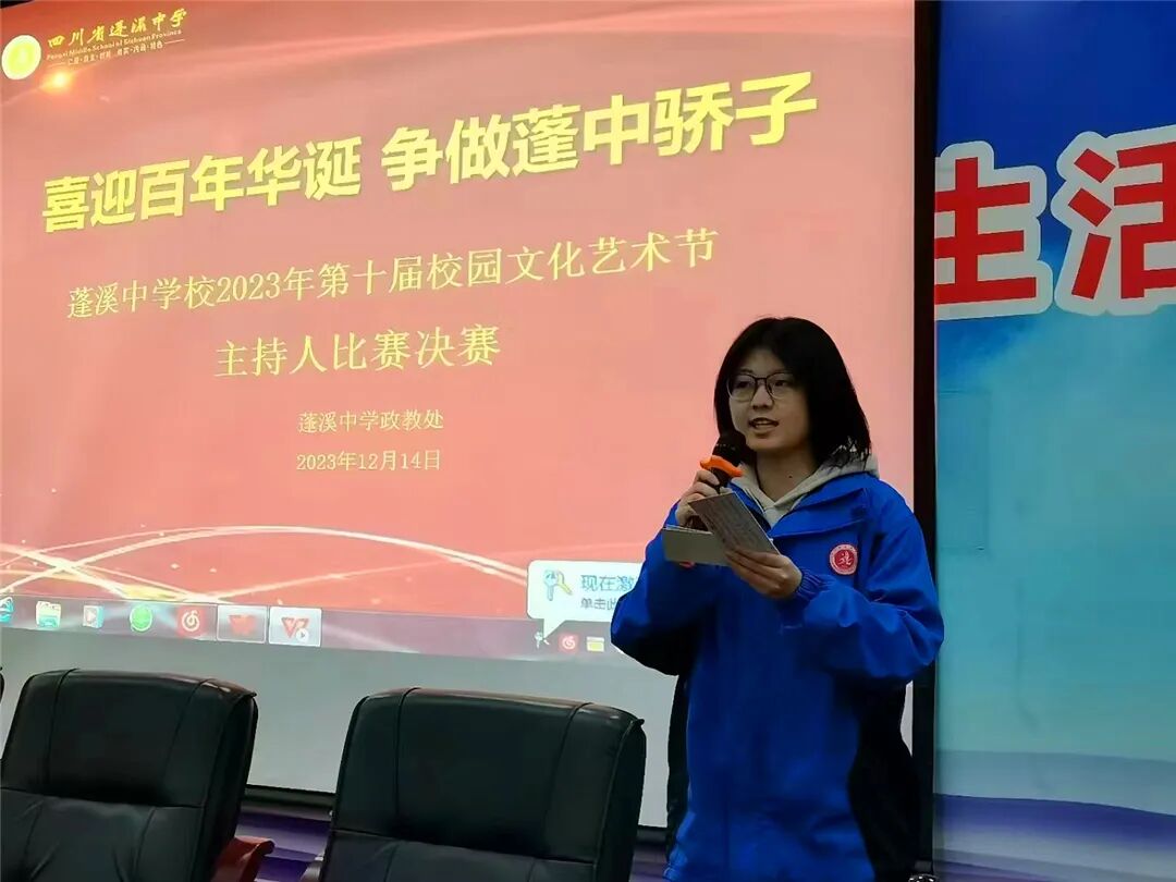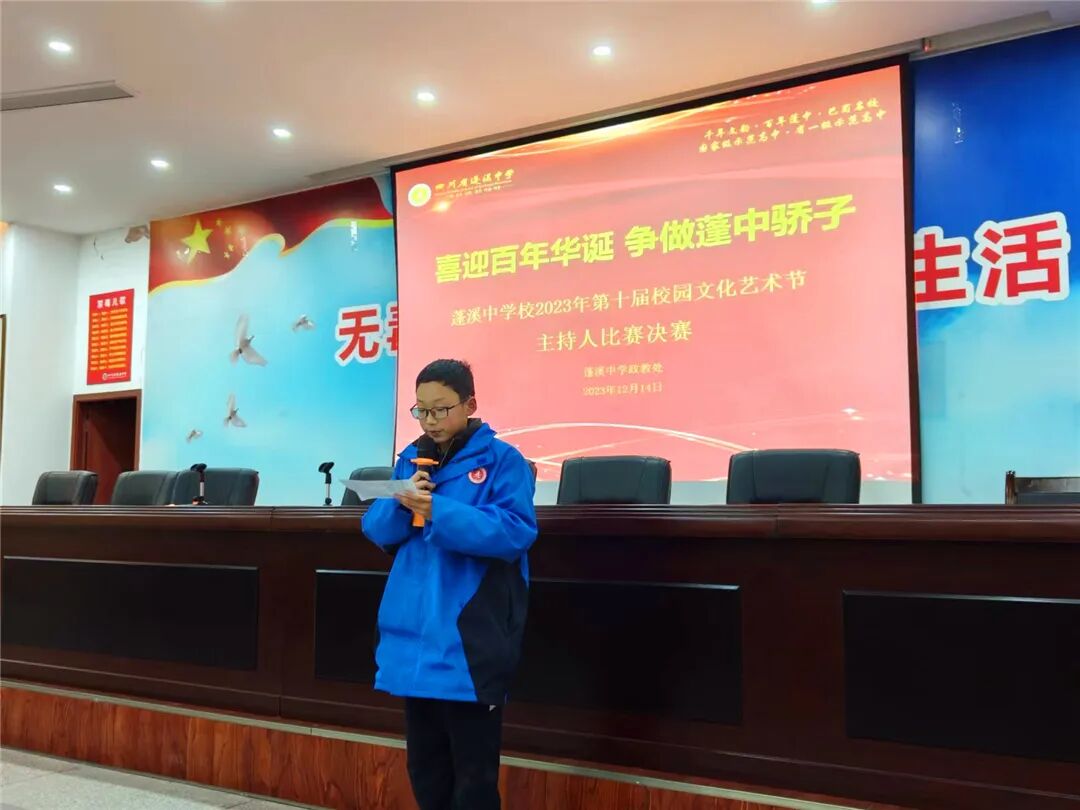 14 日,我校举办了第十届校园科技文化艺术节文化类系列活动总决赛。本次活动是我校贯彻五育并举理念,实施素质教育的具体体现。本次活动旨在加强校园文化建设,同时为广大蓬中学子提供展现个人能力的平台,提升学生的综合素养。对本次活动,各年级高度重视,学生积极响应,经过激烈角逐,各年级选派出代表参加了校级总决赛。