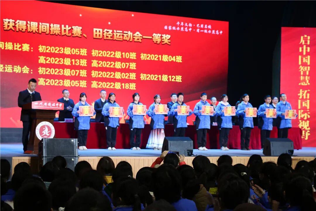 兔岁喜结丰收果,龙腾盛世谱新篇。此次文艺汇演融“德、智、体、美、劳”五育于节目表演中,凝聚了我校校园文化建设的智慧、激情与活力。过去一年,全校师生齐心协力,拼搏进取,捷报频传,成绩斐然。2024年,蓬溪中学全体师生将继续携手奋进,凝心聚力,谱写高质量发展新篇章,为即将到来的建校100周年校庆献礼!