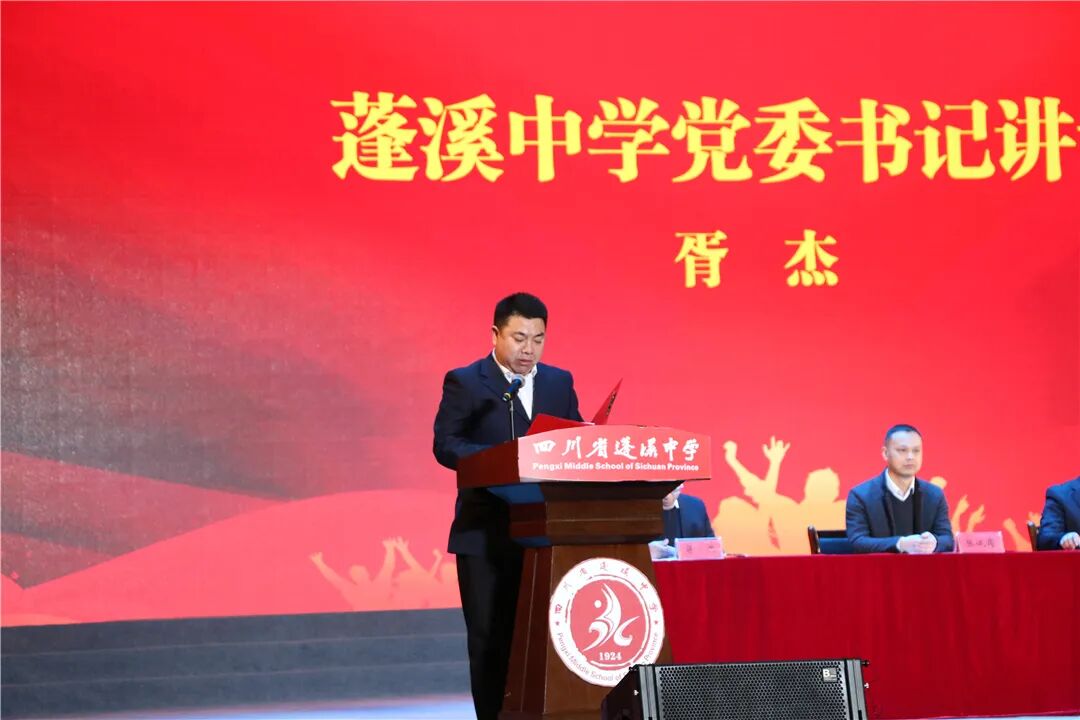 颁奖仪式结束后,蓬溪中学党委书记胥杰致辞。胥书记首先对本次文艺汇演的如期举行致以祝贺,对老师们、同学们的辛勤付出表示衷心的感谢。随后,他回顾了一年来学校取得的成绩,这离不开学校全体师生的勠力同心,务实进取,也离不开社会各界的大力支持。文化铸就校园气质,艺术陶冶师生情操。希望大家在新的一年里,继续乘势而上,砥砺前行,努力把学校打造成教师施展才华、实现人生价值的舞台,学生求知学技、放飞人生理想的驿站,让蓬中成为全体师生的精神文化家园!本次晚会,既是我们向2023年的礼赞,更是我们迎接2024年蓬中百年华诞的美好祝福。百年风雨,百年沧桑,百年薪火相传,弦歌不辍!立足今朝,眺望未来,百年历史展新颜,一路高歌!