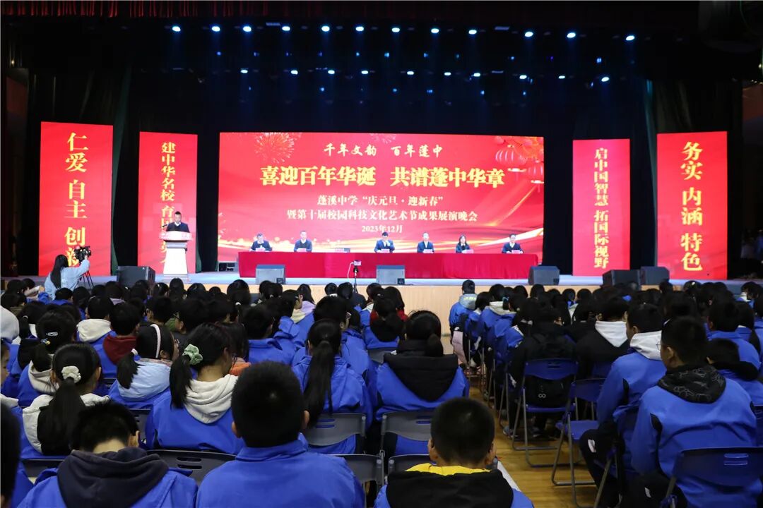 科技引领未来、文化沁润心灵、艺术丰盈生活。为进一步推动学校素质教育的发展,营造浓厚的校园艺术氛围,2023年12月28日晚,蓬溪中学于县体育文化中心举办了“庆元旦·迎新春”暨第十届校园科技文化艺术节成果展演晚会。
