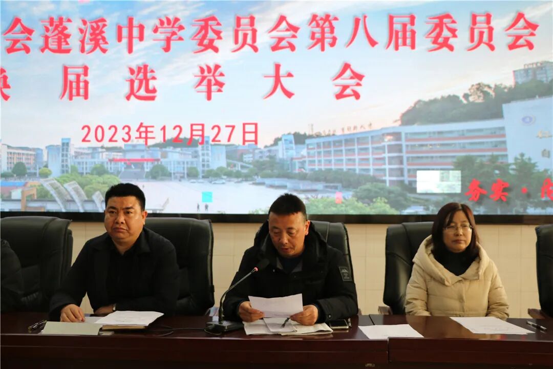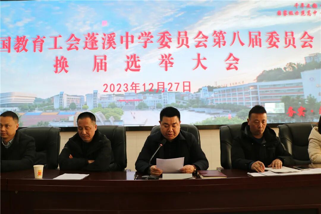 12月27日,蓬溪中学工会换届选举大会经过前期的精心筹备,在学术报告厅隆重举行。学校工会代表应到158人,实到148人。会议由工会副主席胡延安同志主持。