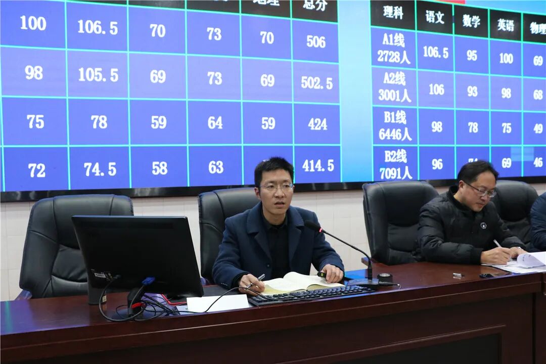 会议首先由教务处副主任王刚深度剖析数据。他详细解读了学生A优、B优上线率,以及各科的平均分、最高分和最低分等关键数据。这些数据不仅反映了学生的知识掌握情况,也揭示了他们在遂宁市乃至全省的相对位置。在公布数据的同时,王主任还进行了深入的分析和解读。他指出,成绩的背后反映出了学校的教育教学水平、学生的学习态度和方法,以及教师的专业素养和教学策略。他特别强调了学校在培养学生综合素质、提升教学质量方面所做的努力和取得的成效。