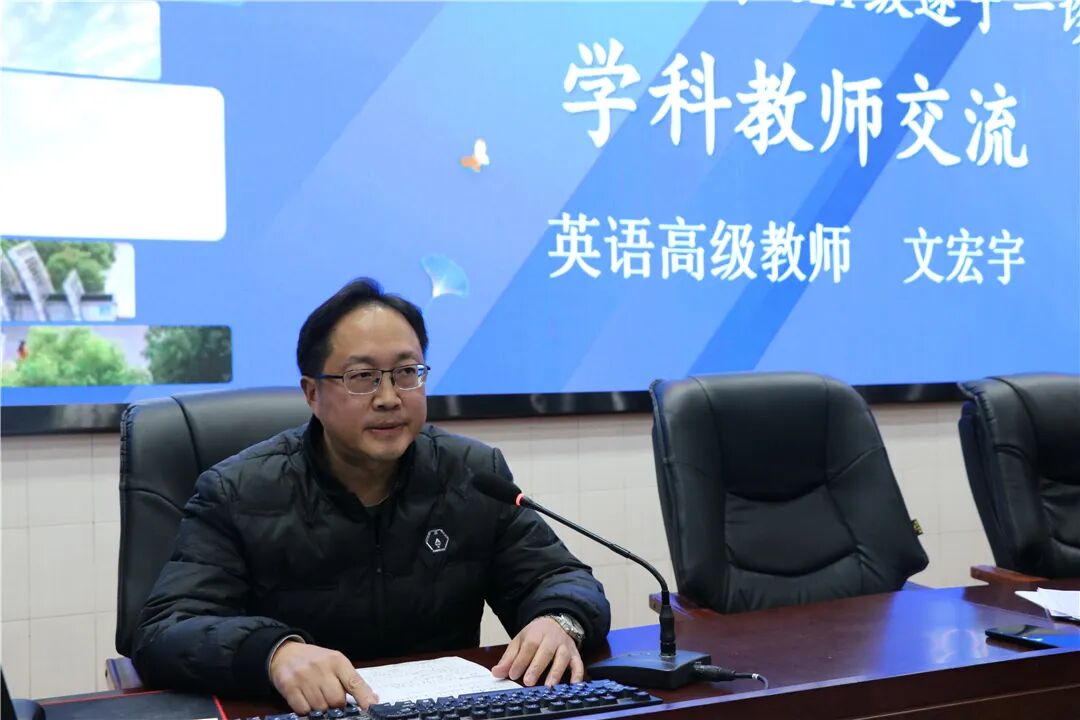 高三英语组文宏宇副校长代表学科教师作了经验交流。他强调要注重课堂实效和学生参与度,要通过观察学生做题情况来针对性地讲解题目,帮助学生更好地理解和掌握知识点;要重视听写改错这一环节,通过及时纠正学生的错误,提高学生的记忆力和语言表达能力;还要制定明确的赏罚机制,用以激励学生的学习热情和规范课堂纪律。